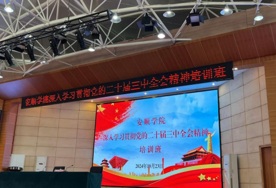 10月23日至10月25日,安顺学院在学术报告厅举办了学习贯彻党的二十届三中全会精神培训班,计划财务处支部书记朱泽昆同志带领支部全体党员参加培训。
